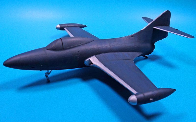 This Panther kit is really turning out to be a fun project. Assembly of the airframe was almost perfect. A little filler was used on the leading edges of the wings in a few spots, and also where the forward part of the wing assembly joined the fuselage. I also gave the seams along the nose a super glue filler treatment just to make sure there were no “ghost seams”.