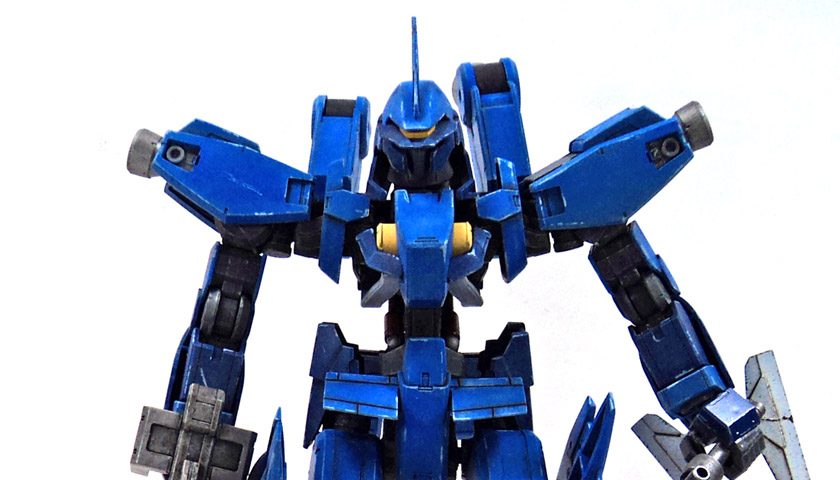 For the weathering, I decided to go minimal. The character who piloted this mobile suit, McGillis Fareed, was basically part of an elite class of rulers of a military faction, and he was quite “GQ”. I just can”t imagine he’d let his mobile suit stay dirty for too long. So I tried to think of how it would look after returning from an engagement, ready to be painted and patched and polished for the next adventure.
