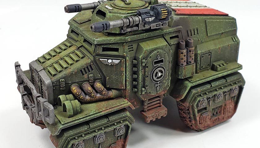 I knew going into the final finishing process that I wanted the Taurox to be fairly dirtied up. Not “rusted hulk after the war” kind of dirty, but rather “been in the field for months now and no time for maintenance” dirty. In fact, I actually had a specific instance in mind from my own time in the Army.