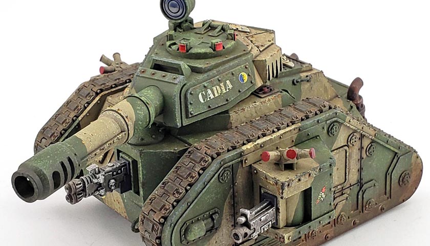 I was pretty happy with how the Leman Russ turned out. It met my goal of being heavily weathered, yet I think the weathering products used should be solid enough to allow for tabletop gaming if the eventual buyer chooses to do so. It has a look that is believable in a sense, yet is also “over the top” enough that I feel it fits the universe it is drawn from.